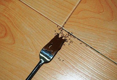 - Липкие смеси. К таким относят крахмал, рис, манку или муку. Для этого метода нужно развести один из ингредиентов с водой для образования липкой массы и положить ее возле приманки (сиропа). Когда муравьи подойдут близко, они просто увязнут в этой массе, а если съедят — то это вызовет расширение желудка и скорую смерть.